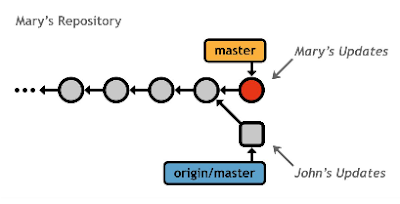 ! [rejected] master -> master (non-fast-forward)To remedy this situation, Mary needs to synchronize with the central repository. Then, she’ll be able to push her changes in the usual fashion.